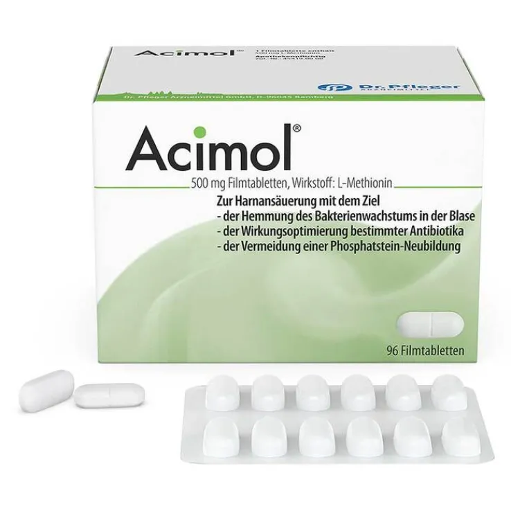 Acimol® 500 mg Filmtabletten. Anw.: Zur Harnansäuerung mit dem therapeutischen Ziel: Optimierung der Wirkung von Antibiotika mit Wirkungsoptimum im sauren Urin, Vermeidung der Steinneubildung bei Phosphatsteinen, Hemmung des Bakteriumwachstums. Zu Risiken und Nebenwirkungen lesen Sie die Packungsbeilage und fragen Sie Ihre Ärztin, Ihren Arzt oder in Ihrer Apotheke. (ACI/060513/LW).