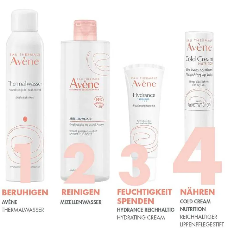 Das enthaltene weiße Bienenwachs schützt die Haut vor dem Austrocknen, Jojobaöl wirkt regenerierend und repariert die Lippen intensiv, Shea-Butter (enthält Omega-6-Fettsäuren und Omega-9- Fettsäuren), wirkt rückfettend und nährend und stellt die Hautbarriere der geschädigten Lippen wieder her. Avene Thermalwasser beruhigt die Lippenpartie.