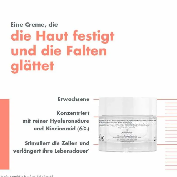 Mit zunehmendem Alter verbreiten sich alternde Zellen schneller und die Hautregeneration verlangsamt sich. Die Hyaluron Activ B3 zellerneuernde Creme wirkt gezielt gegen diese Prozesse, indem sie die Lebensdauer der Zellen verlängert und der Haut hilft, ihre jugendliche Ausstrahlung zu bewahren.