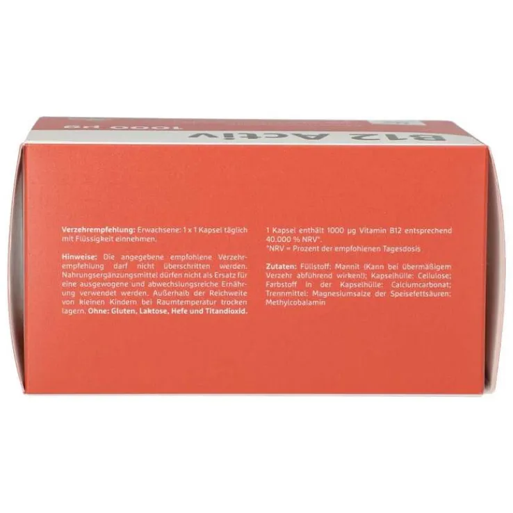1 Kapsel enthält 1000 μg Vitamin B12 entsprechend 40.000 % NRV*.