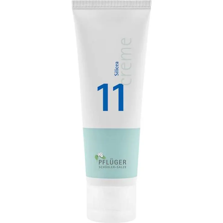 Biochemie Pflüger® Creme Nr. 11 Silicea, Zusammensetzung: 10 g Creme enthalten: Wirkstoff: Acidum silicicum Trit. D4 0,1 g. Sonstige Bestandteile: Benzylalkolhol, Cetylpalmitat (Ph. Eur.), Cetylstearylalkohol (Ph. Eur.), Natriumcitrat, Octyldodecanol (Ph. Eur.), Polysorbat 60, Propylenglycol, Sorbitanstearat, gereinigtes Wasser. Registriertes homöopathisches Arzneimittel, daher ohne Angabe einer therapeutischen Indikation. Gegenanzeigen: Überempfindlichkeit (Allergie) gegen den Wirkstoff oder einen der sonstigen Bestandteile, Anwendung im und am Auge, Anwendung auf den Schleimhäuten, Anwendung auf geschädigter Haut, Kinder unter 4 Jahren. Nebenwirkungen: keine bekannt. Enthält Propylenglycol und Cetylstearylalkohol. Packungsbeilage beachten. Zu Risiken und Nebenwirkungen lesen Sie die Packungsbeilage und fragen Sie Ihre Ärztin, Ihren Arzt oder in Ihrer Apotheke. Homöopathisches Laboratorium Alexander Pflüger GmbH & Co. KG | 33378 Rheda-Wiedenbrück | [email protected] | www.pflueger.de