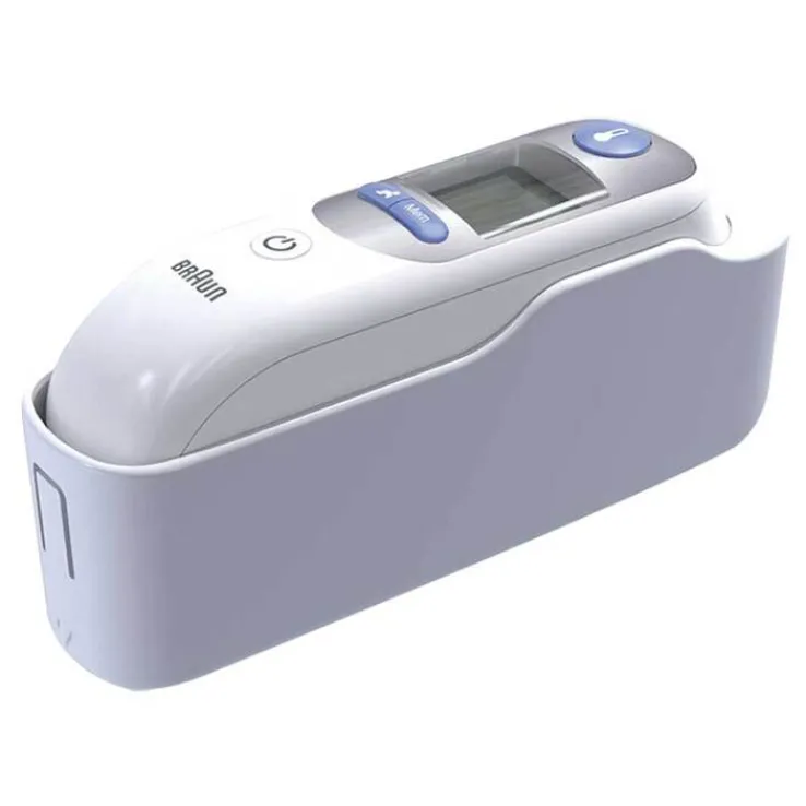 Der Braun ThermoScan 7 ist das Flaggschiff unter den Thermometern von Braun. Dieses Ohrthermometer zeichnet sich durch die neue, patentierte Age Precision Technologie zur altersabhängigen Einstellung von Fiebergrenzwerten aus, um genaue, sichere und schnelle Temperaturmessungen im Ohr durchführen zu können.