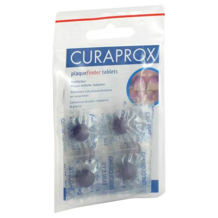 CURAPROX Plaque-Anfärbe-Tabletten sind wertvolle Helfer mit Erfolgsgarantie. Sie zeigen Plaquestellen im Mund an, und es wir deutlich ersichtlich, wo nachgeputzt werden sollte. Ein Zusatzeffekt: Plaquefinder motiviert: Zu sehen, wie die Plaque weniger wird, ist die schönste Belohnung.