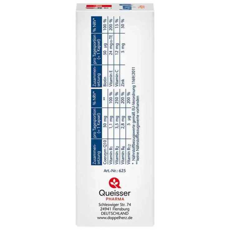 Nahrungsergänzung mit 50 mg Coenzym Q10, B-Vitaminen sowie Vitamin C, Vitamin E und dem Spurenelement Zink