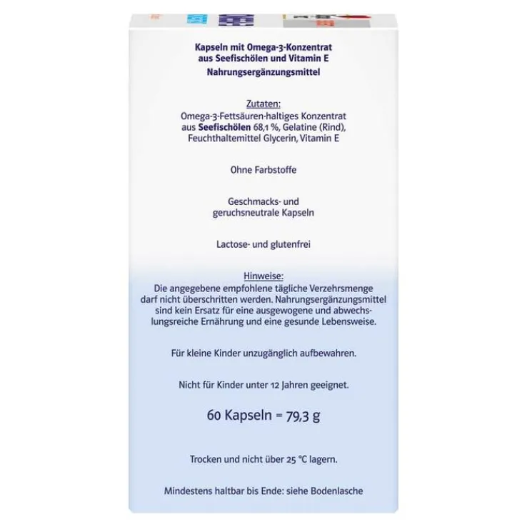 Die Doppelherz system-Kapseln enthalten 900 mg Omega-3-Konzentrat aus Seefischölen, das 60 % an Omega-3-Fettsäuren enthält. Viele andere herkömmliche Fischöle enthalten nur 30 % Omega-3-Fettsäuren. Aufgrund dieser hohen Konzentration von Omega-3-Fettsäuren verringert sich die tägliche Einnahmemenge auf nur 1 Kapsel täglich!