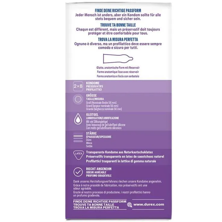 - hauchzarte extra befeuchtete Kondome im Doppelpack zu 2 x 8 Stück