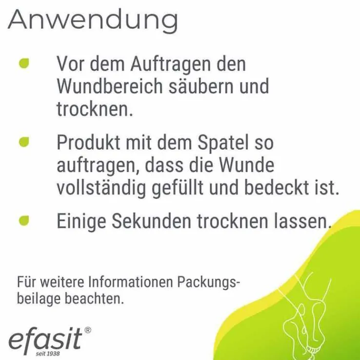 - Produkt mit dem dazugehörigen Spatel so verteilen, dass die Wunde vollständig gefüllt und bedeckt ist.