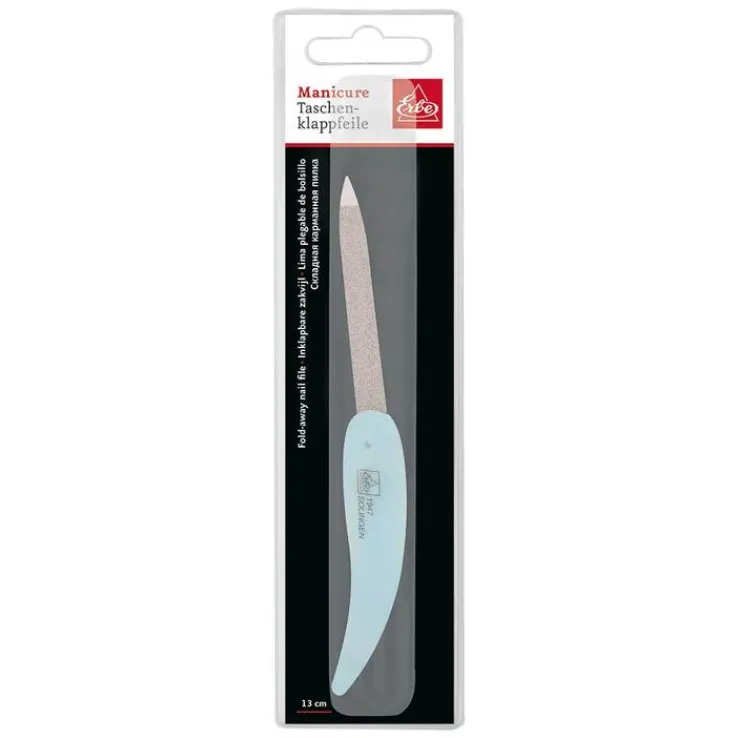 Saphir-Nagelfeilen bestehen aus elastischem, formstabilem und gehärtetem Federstahl, was ein Verbiegen der Feile vermeidet und somit eine lange Nutzung der Feile ermöglicht. Durch eine spezielle Chrombeschichtung ist die Saphir-Feile auch für Nickelallergiker geeignet. Die ERBE Klappfeile-Pocket Pastell kann zusammengeklappt werden und zuhause und unterwegs sicher verstaut werden. Die Feile kann unter fließendem Wasser gereinigt werden. Verleihen Sie Ihren Nägeln den letzten Schliff, egal wo Sie sind. Schönheit immer griffbereit. Größe: Offen 13 cm, geschlossen 7,5 cm.“