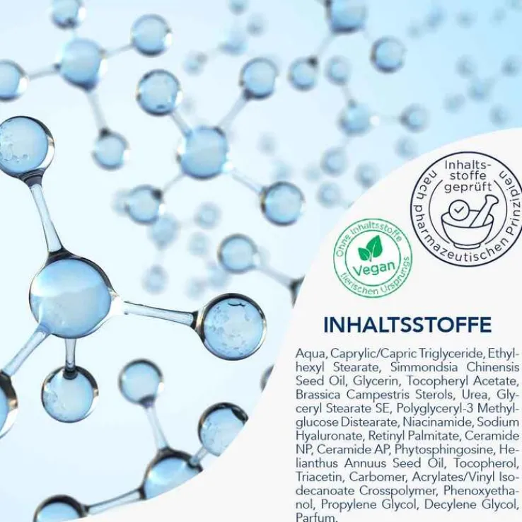 Aqua, Caprylic/Capric Triglyceride, Ethylhexyl Stearate, Simmondsia Chinensis Seed Oil, Glycerin, Tocopheryl Acetate, Brassica Campestris Sterols, Urea, Glyceryl Stearate SE, Polyglyceryl-3 Methylglucose Distearate, Niacinamide, Sodium Hyaluronate, Retinyl Palmitate, Ceramide NP, Ceramide AP, Phytosphingosine, Helianthus Annuus Seed Oil, Tocopherol, Triacetin, Carbomer, Acrylates/Vinyl Isodecanoate Crosspolymer, Phenoxyethanol, Propylene Glycol, Decylene Glycol, Parfum