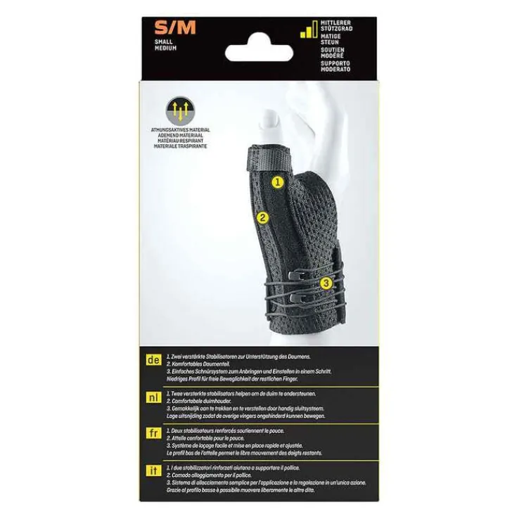 - Stabilisierung und Unterstützung bei schmerzenden, schwachen oder verletzten Daumen