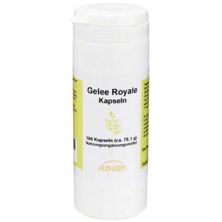 Eine Kapsel enthält: 170 mg Gelèe Royale, 60 mg Vitamin C, 18 mg Niacin, 10 mg Vitamin E, 6 mg Pantothensäure, 2 mg Vitamin B6, 1,6 mg Vitamin B2, 1,4 mg Vitamin B1, 200 µg Folsäure, 150 µg Biotin, 1 µg Vitamin B12.