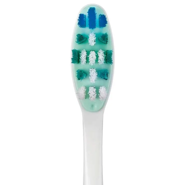 - Ein ergonomischer, handfreundlicher Zahnbürstengriff und ein schlanker Bürstenhals helfen übermäßigen Druck beim Zähneputzen zu vermeiden.