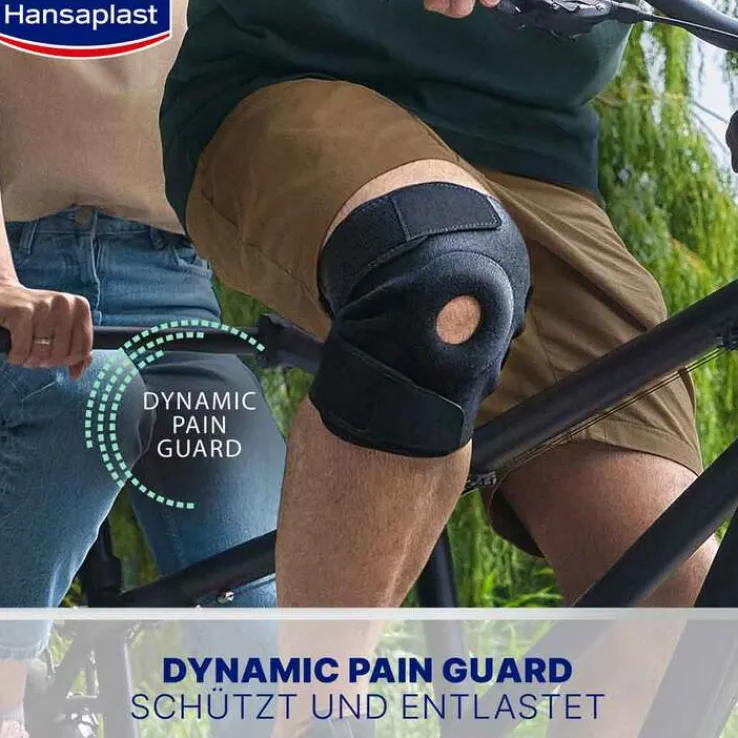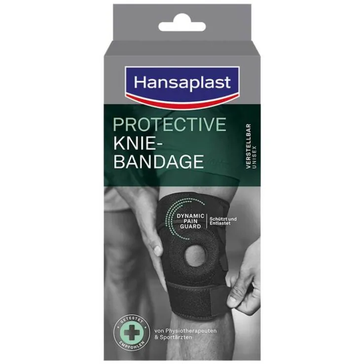 Die verstellbare Hansaplast Protective Knie-Bandage bietet Stabilität für schwache oder verletzte Knie und bietet Schutz vor weiteren Verletzungen. Die verstellbare Kniebandage bietet einen moderaten Stützgrad während der Bewegung und das Kompressionslevel kann individuell angepasst werden.