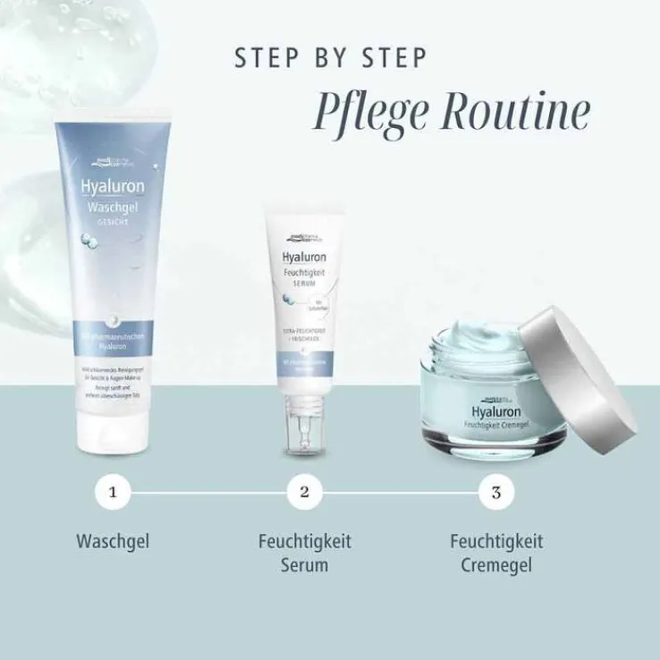 Der bestmögliche Wirkeffekt kann durch die Kombination der Dr. Theiss Produkte erzielt werden. Für eine gründliche Pflege-Routine wird empfohlen, mit dem Hyaluron Waschgel zu starten, anschließend wird das Hyaluron Feuchtigkeit Serum auf die Haut aufgetragen und zum Schluss wird das Cremegel angewandt. Das Waschgel reinigt, entfernt Make-Up sowie überschüssigen Talg, das leichte, fast flüssige Serum spendet Feuchtigkeit mit Soforteffekt und das Cremegel versorgt die Haut langanhaltend mit wichtigen Nährstoffen sowie Feuchtigkeit. Für eine Hautpflege mit System.