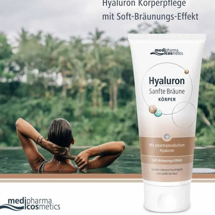 Sommer auf der Haut: Mit der Hyaluron Sanfte Bräune Körperpflege von medipharma cosmetics können Sie sich das ganze Jahr über eine zarte, natürlich aussehende Bräune freuen.