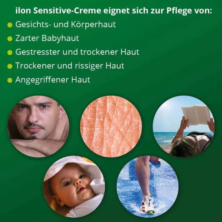 ilon Sensitive-Creme ist eine sehr hochwertige Intensivpflege für trockene und empfindliche Haut. Sie wurde unter anspruchsvollen dermatologischen Gesichtspunkten speziell für die Gesichts- und Körperpflege entwickelt und ist auch hervorragend für zarte Babyhaut geeignet.