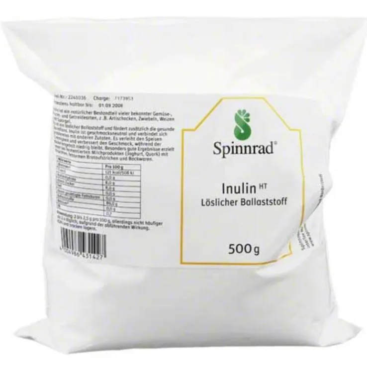 Inulin ist ein prebiotischer, natürlicher Ballststoff aus der Chicorée-Wurzel. Es ist Bestandteil vieler bekannter Gemüse-, Frucht- und Getreidearten, z.B. Artikschocken, Zwiebeln und Spargel. Es ist ein löslicher Ballaststoff, der einen aktivierenden Einfluss auf die Darmflora ausübt.