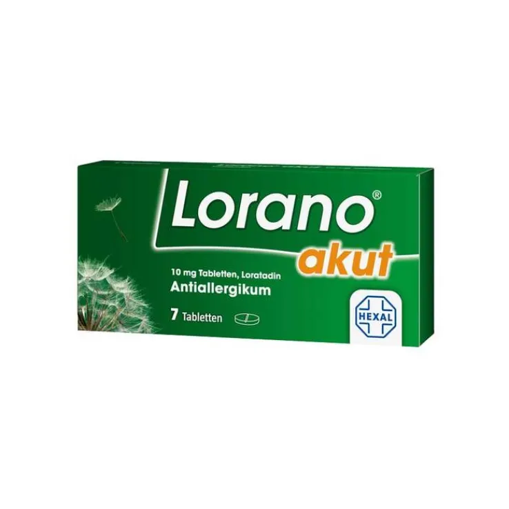 Lorano® akut, 10 mg Tabletten: Lorano® akut, 10 mg Tabletten Wirkstoff: Loratadin. Anwendungsgebiete: Zur Behandlung der Beschwerden bei allergischen Entzündungen im Inneren der Nase, z. B. Heuschnupfen, und bei chronischer Nesselsucht unbekannter Ursache. Warnhinweis: Enthält Lactose. Zu Risiken und Nebenwirkungen lesen Sie die Packungsbeilage und fragen Sie Ihre Ärztin, Ihren Arzt oder in Ihrer Apotheke! Mat.-Nr.: 2/51012340-02 Stand: Mai 2018 Hexal AG, 83607 Holzkirchen, www.hexal.de