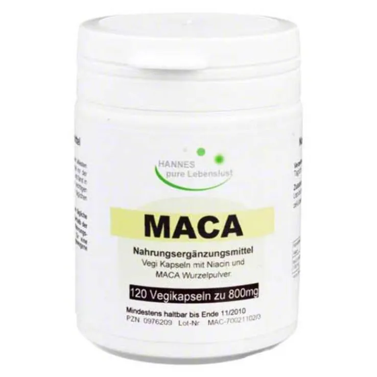 Maca (Lepidium peruvianum), Hydroxypropylmethylcellulose (pflanzliche Kapselhülle), Nicotinamid.