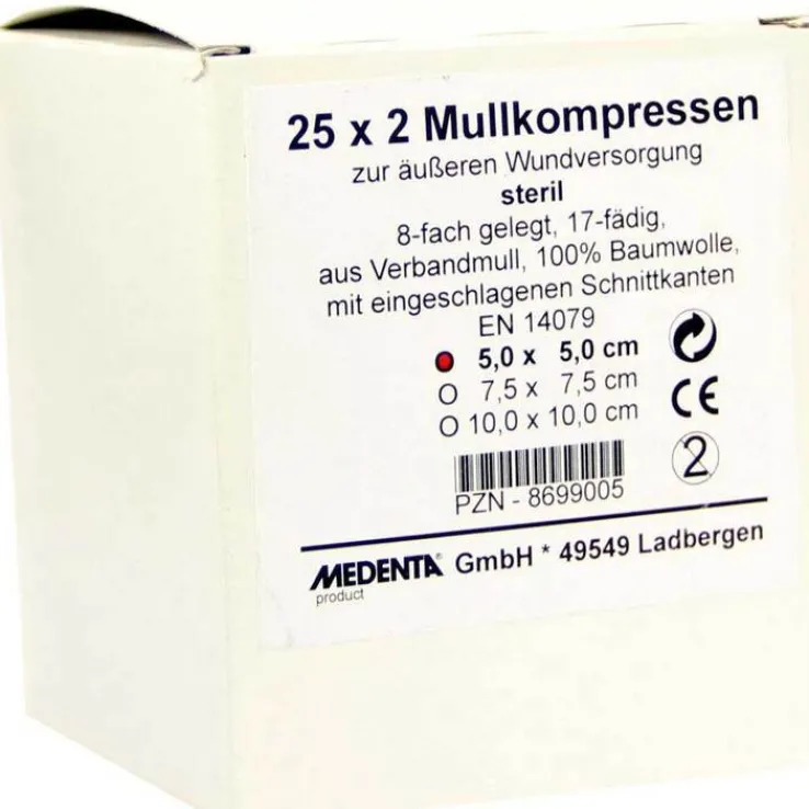 Mullkompressen 5×5 cm steril 8-fach, 25X2 St