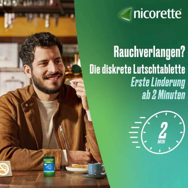 Nicorette® freshmint 2 mg Lutschtabletten, gepresstWirkstoff: Nicotin (als Nicotinresinat). Anwendungsgebiete: Behandlung der Tabakabhängigkeit durch Linderung der Nicotinentzugserscheinungen und Verringerung des Nicotinverlangens für Raucher mit geringer Tabakabhängigkeit ab 18 Jahren. Zum sofortigen Rauchstopp sowie zur Verringerung des Zigarettenkonsums (Rauchreduktion), um auf diesem Wege schrittweise den Rauchausstieg zu erreichen. Zu Risiken und Nebenwirkungen lesen Sie die Packungsbeilage und fragen Sie Ihre Ärztin, Ihren Arzt oder in Ihrer Apotheke. Johnson & Johnson GmbH, 41470 Neuss. Stand: 10/2024