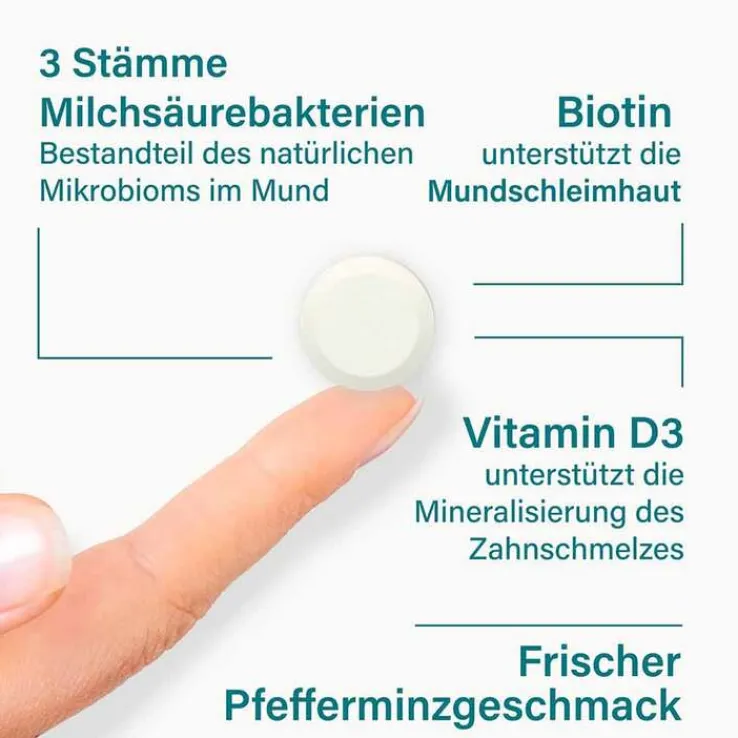 Nupure probadent forte enthält 5 Milliarden KBE (koloniebildende Einheiten) aus drei ausgewählten Bakterienstämmen, ergänzt durch Biotin und Vitamin D3. Der frische Pfefferminzgeschmack sorgt für einen angenehmen Start in den Tag – ganz ohne Zucker.