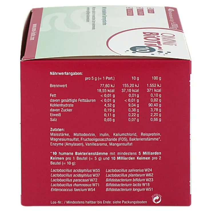Omni-Biotic 10 enthält pro Portion 5 Milliarden Darmbakterien aus 10 verschiedenen Stämmen, die natürlich im menschlichen Darm vorkommen. In wissenschaftlichen Studien wurde gezeigt, dass sich die in Omni-Biotic 10 enthaltenen Bakterien im Darm ansiedeln und vermehren können.