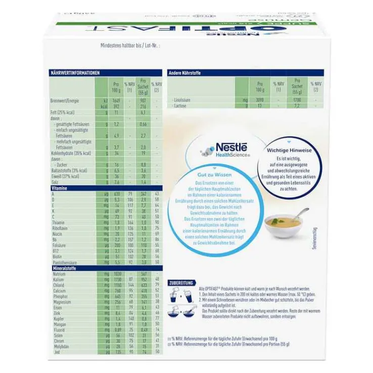 Die Optifast Produkte erfüllen nur im Rahmen einer kalorienarmen Ernährung den angestrebten Zweck, andere Lebensmittel müssen Teil dieser Ernährung sein.