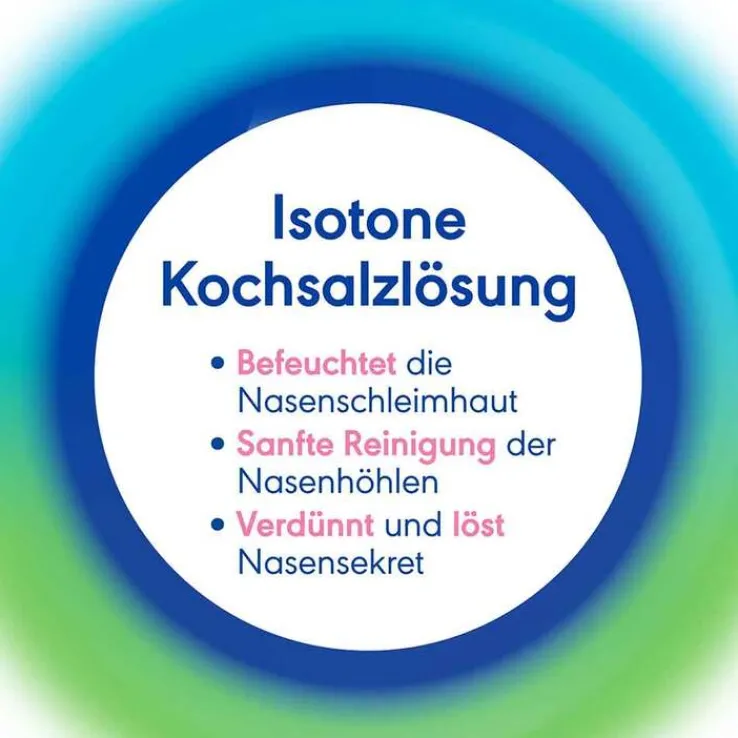 Reinigt Nasenhöhlen, befeuchtet Nasenschleimhaut, verdünnt und löst Nasensekret