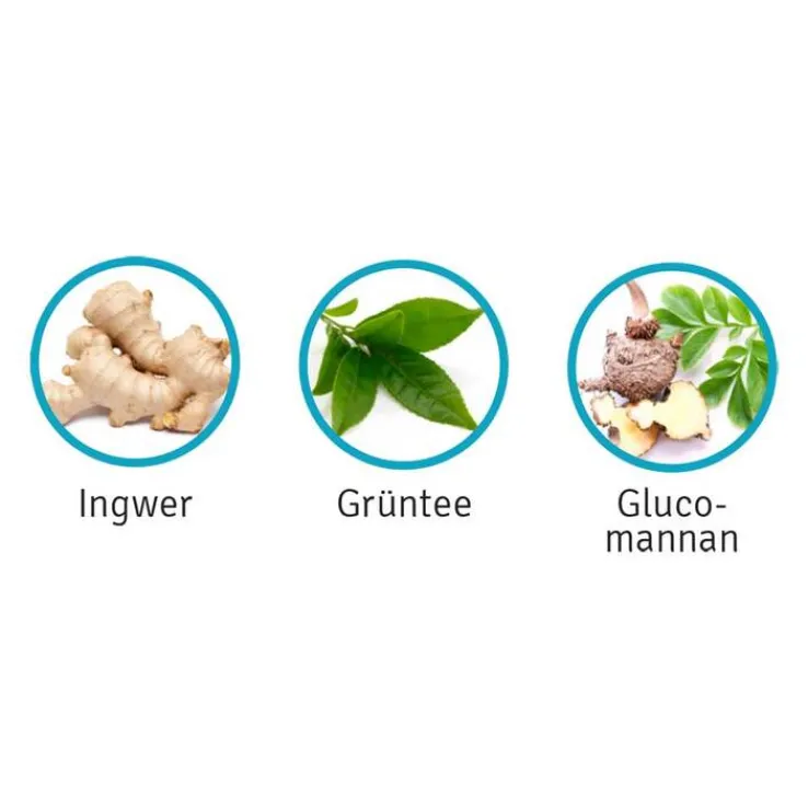 Glucomannanreicher Konjak-Wurzel Extrakt, Hydroxypropylmethylcellulose (Kapselhülle), Kartoffelstärke, Grüntee Extrakt, Ingwer Pulver,Zinkcitrat, Chrompicolinat, Kupfercitrat