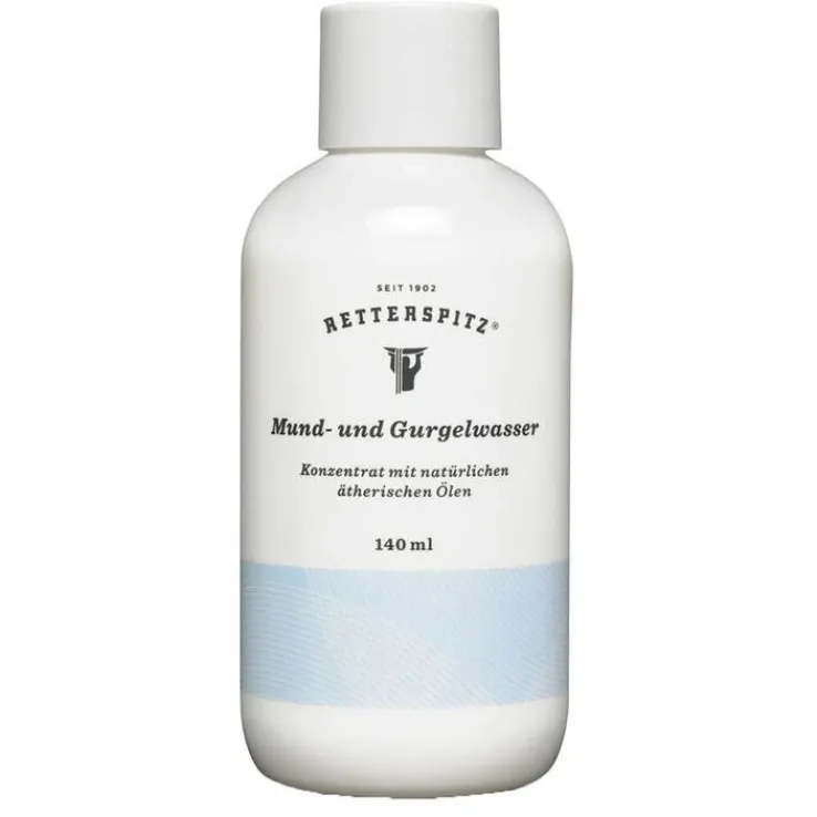 Eine Mundspülung schenkt nicht nur im Nu ein frisches Gefühl, sie schützt gleichzeitig die Mund und Rachenschleimhaut. Retterspitz Mund- und Gurgelwasser enthält einen wirkungsvollen und konzentrierten Mix aus pflanzlichen Inhaltsstoffen wie Thymian, Eukalyptus, Pfefferminze, Anis und Fenchel.