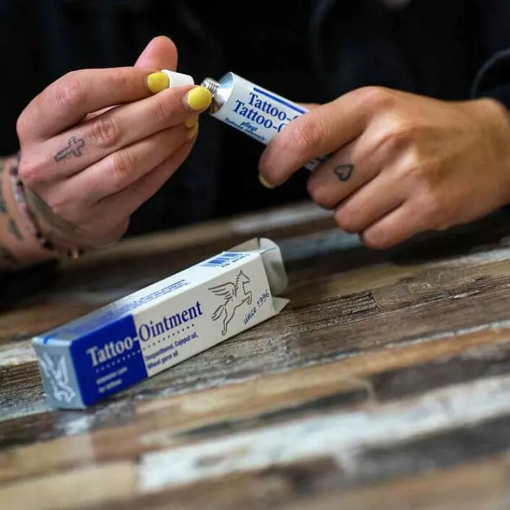 Tragen Sie die Tattoo Creme Pegasus Pro dünn nach jedem Waschen auf die Haut auf.