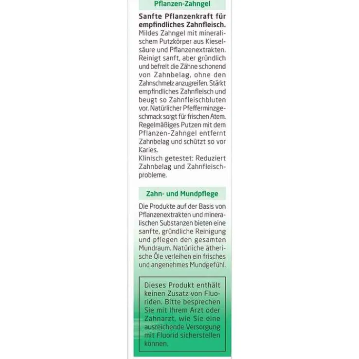 Natürlicher Pfefferminzgeschmack sorgt für frischen Atem. Regelmäßiges Putzen mit dem Pflanzen-Zahngel entfernt Zahnbelag und schützt so vor Karies.