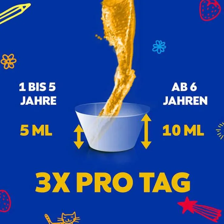 Kinder von 1 bis 5 Jahren nehmen 3-mal täglich 5 ml ein.