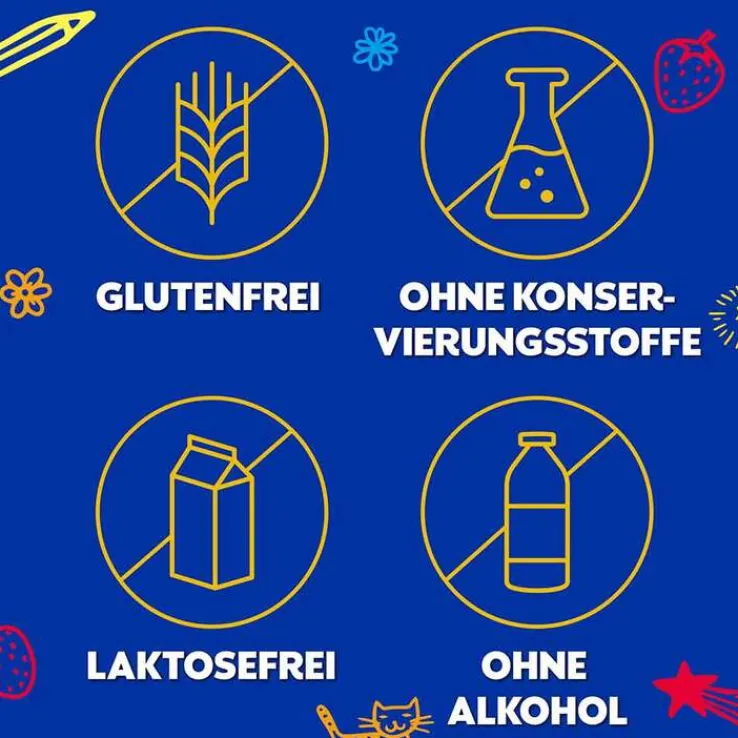 - Frei von Alkohol, Gluten, Konservierungsstoffen und Laktose
