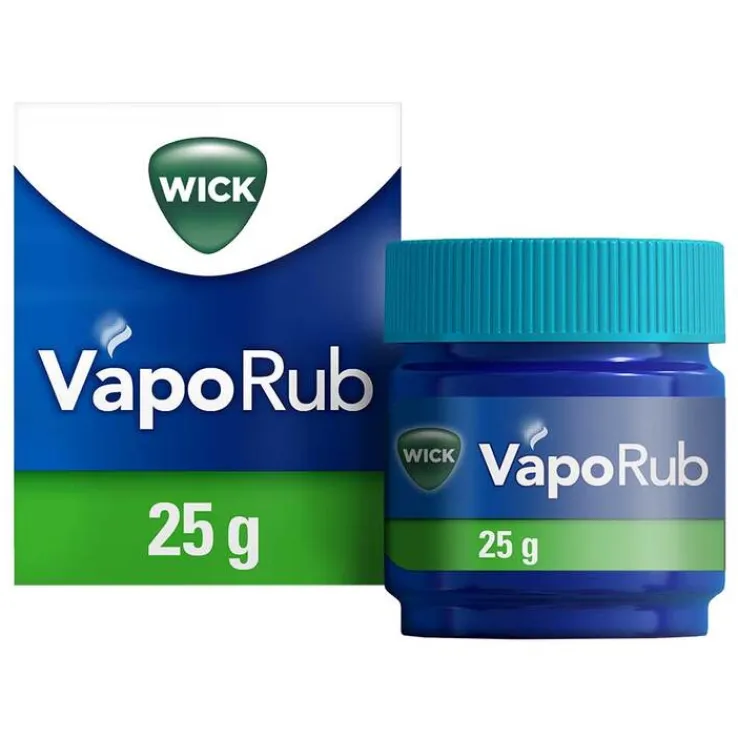 WICK VapoRub Erkältungssalbe Anwendungsgebiete: Zur Besserung des Befindens bei Erkältungsbeschwerden der Atemwege (Schnupfen, Heiserkeit, Entzündung der Bronchialschleimhaut mit Symptomen wie Husten und Verschleimung). Freiverkäuflich. Stand: Juli 2023 Zu Risiken und Nebenwirkungen lesen Sie die Packungsbeilage und fragen Sie Ihre Ärztin, Ihren Arzt oder in Ihrer Apotheke. WICK Pharma, Zweigniederlassung der Procter & Gamble GmbH, D-65823 Schwalbach