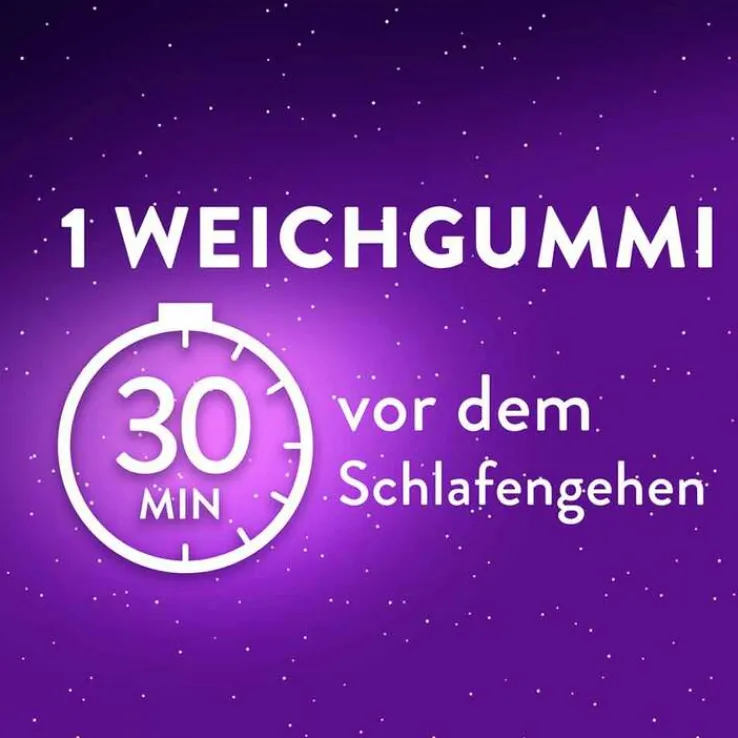 30 Minuten vor dem Zubettgehen bei Bedarf 1 Weichgummi einnehmen, die Abendroutine fortsetzen,