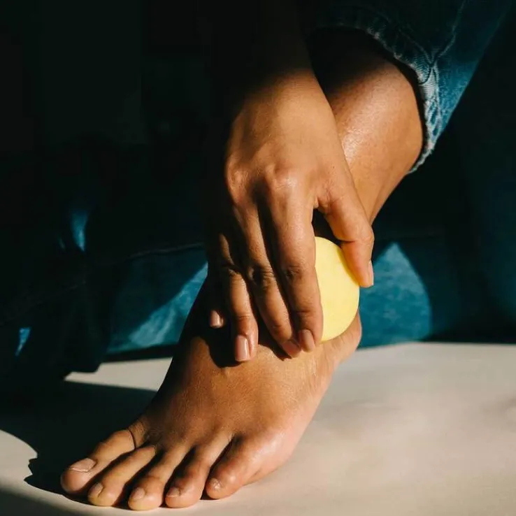 Die feste Creme aus der Dose nehmen und wie eine Seife in die Hände nehmen. Nach Belieben die Füße und den Fußrücken mit der Creme eincremen und danach kurz einziehen lassen.