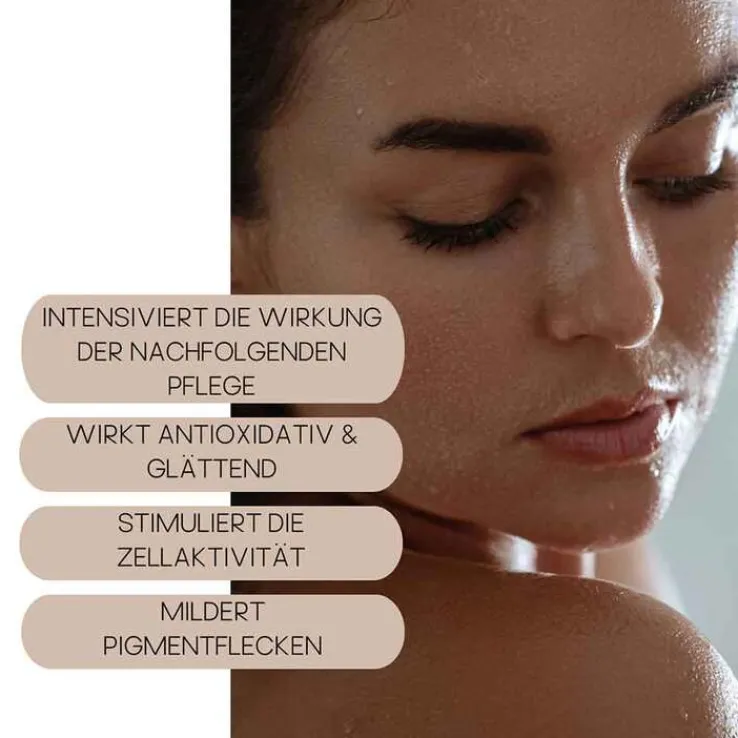 Auf die gereinigte Haut von Gesicht, Hals und Dekollete sprühen. Anschließend Serum, Creme oder Öl in die noch tonerfeuchte Haut einmassieren.