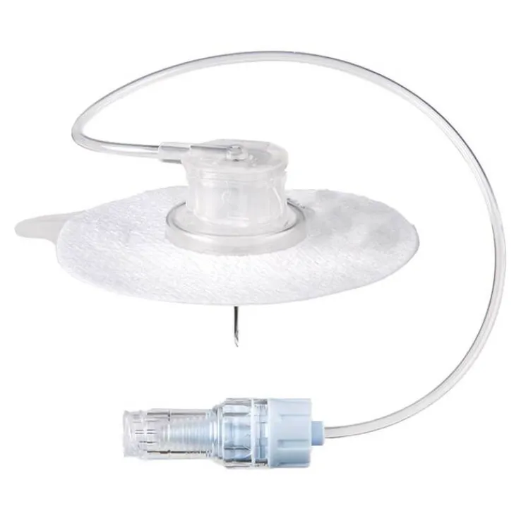- Sicherung der Portkanülenposition durch integriertes Klebeadhäsiv