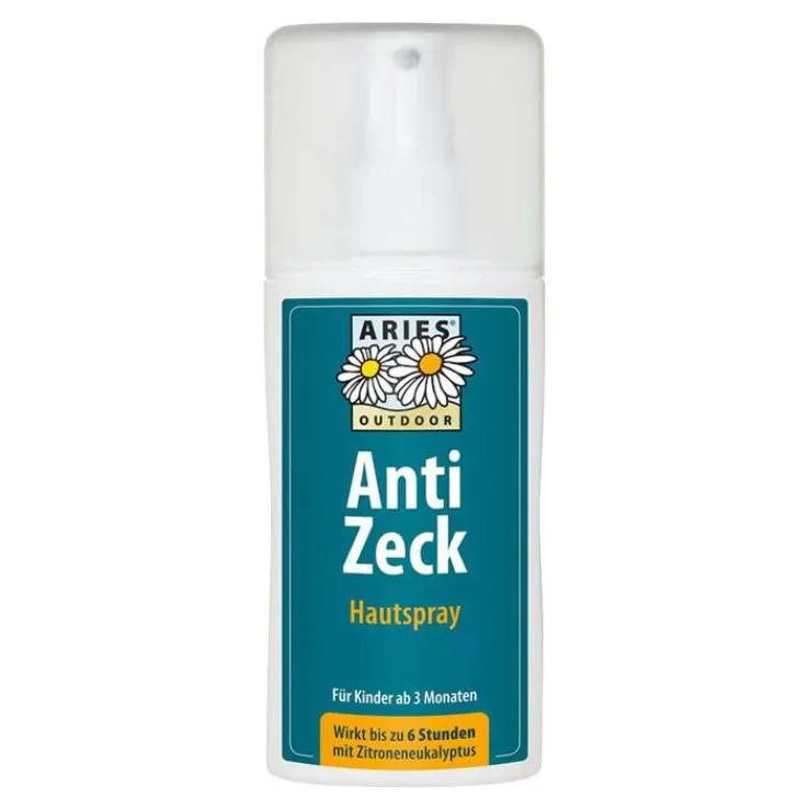Das ARIES® Anti Zeck ist ein zeckenabwehrendes Hautspray mit einem Wirkstoff, der aus den Blättern des Zitronen-Eukalyptusbaums gewonnen wird. Zecken werden bis zu 6 Stunden ferngehalten.