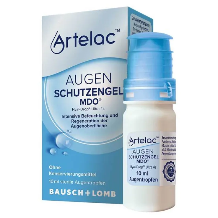 Kleinere Verletzungen und geschädigte Augenoberflächen treten häufig auf, dann sind schnelle Symptomlinderung und schützende Regeneration unerlässlich. Entdecken Sie die innovative 4-fach Formel von Artelac® Augenschutz- engel MDO®, die Ihr Auge regeneriert und nachhaltig schützt. Diese Augentropfen unterstützen die Wundheilung geschädigter Augenoberflächen und sind ideal bei kleineren Verletzungen durch Kontaktlinsen, Hornhautschädi- gungen und nach Operationen am Auge. Unsere Lösung ist konservierungsmittelfrei und für Kontaktlinsenträger geeignet – auch während des Tragens. Nach dem Öffnen bleibt die Lösung bis zu 3 Monate haltbar.