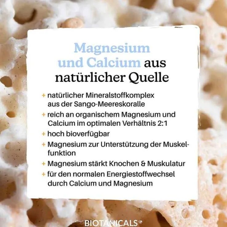 * Magnesium trägt zur Verringerung von Müdigkeit und Ermüdung bei. Magnesium trägt zum Elektrolytgleichgewicht bei. Magnesium und Calcium tragen zu einem normalen Energiestoffwechsel bei. Magnesium trägt zu einer normalen Funktion des Nervensystems bei. Magnesium und Calcium tragen zu einer normalen Muskelfunktion bei. Magnesium trägt zu einer normalen Eiweißsynthese bei. Magnesium trägt zur normalen psychischen Funktion bei. Magnesium trägt zur Erhaltung normaler Knochen bei und Calcium wird für die Erhaltung normaler Knochen benötigt. Magnesium trägt zur Erhaltung normaler Zähne bei. Magnesium hat eine Funktion bei der Zellteilung. Calcium trägt zu einer normalen Blutgerinnung bei. Calcium trägt zu einer normalen Signalübertragung zwischen den Nervenzellen bei. Calcium trägt zur normalen Funktion von Verdauungsenzymen bei. Calcium hat eine Funktion bei der Zellteilung und -spezialisierung. Calcium wird für die Erhaltung normaler Zähne benötigt