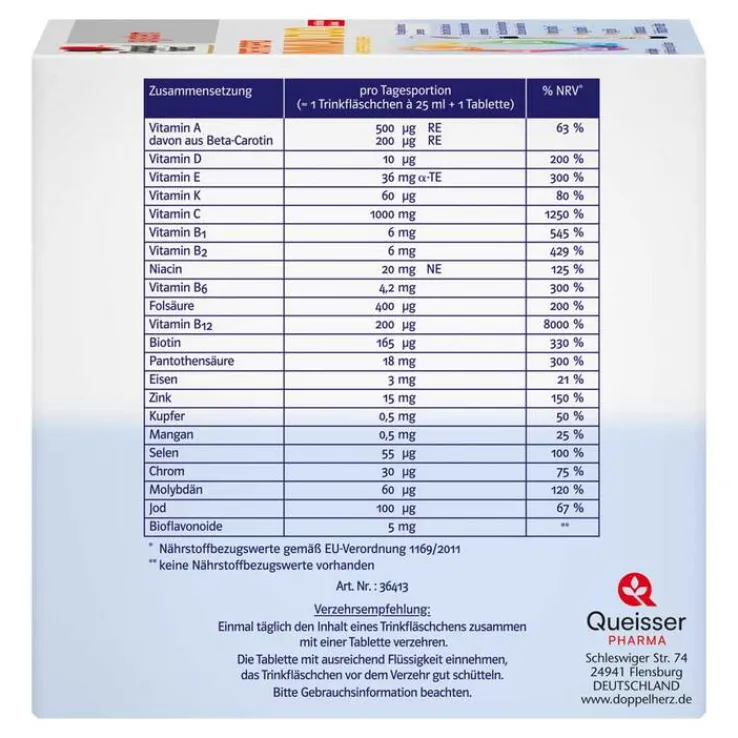 - Nahrungsergänzungsmittel mit 21 ausgewählten Vitaminen und Spurenelementen