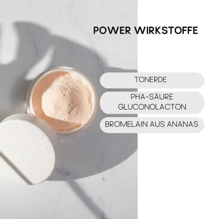 Das Fruchtenzym-Peeling befreit die Haut schonend und effektiv von Ablagerungen und fördert die Hautregeneration. Mildes Bromelain aus Ananas löst Hautschüppchen sowie Schmutzpartikel und verfeinert das Hautbild. Die für sehr empfindliche Hauttypen geeignete PHA-Säure Gluconolacton aus Mais wirkt ebenfalls sanft peelend, stärkt die Hautbarriere und stimuliert die Zellerneuerung. Tonerde wirkt mineralisierend. Das Peeling verleiht ein frisches, strahlendes Hautbild und verbessert die Aufnahmefähigkeit der Haut für die nachfolgende Pflege.