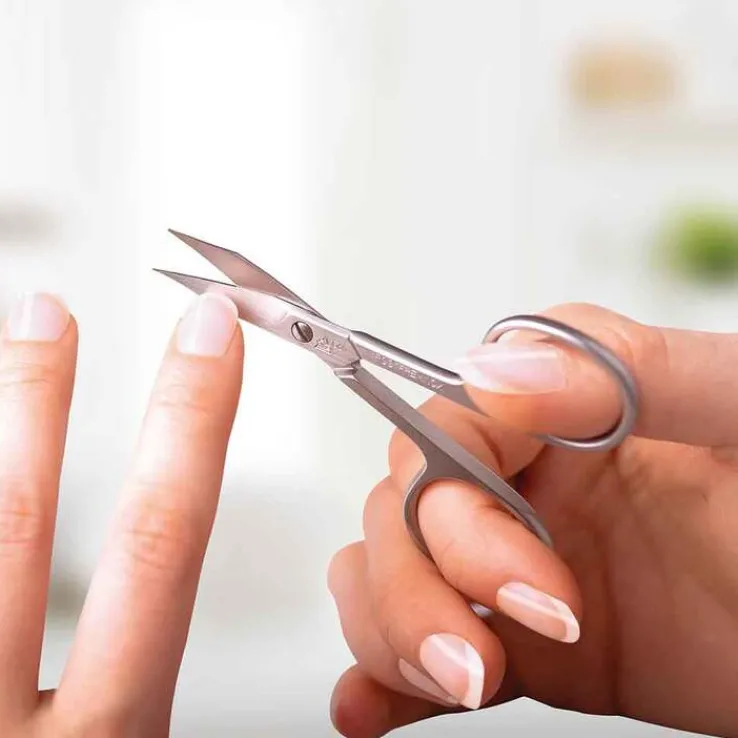 Der vordere, feine Bereich der Schere ist speziell dafür konzipiert, die Nagelhaut präzise zu entfernen. Diese feine Klinge ermöglicht es Ihnen, selbst in schwer zugänglichen Bereichen sorgfältig zu arbeiten, ohne die empfindliche Haut um den Nagel herum zu verletzen. So erzielen Sie ein sauberes und gepflegtes Erscheinungsbild Ihrer Nägel.