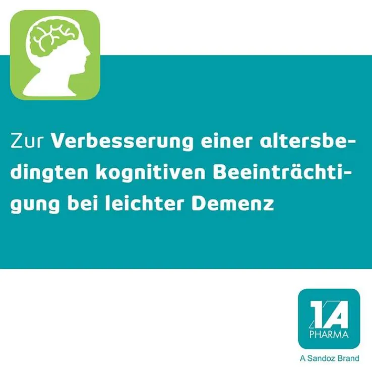 Ginkgo – 1 A Pharma® 240 mg Filmtabletten Wirkstoff: Ginkgo biloba-Blätter-Trockenextrakt. Anwendungsgebiete: Pflanzliches Arzneimittel zur Verbesserung einer altersbedingten kognitiven Beeinträchtigung und der Lebensqualität bei leichter Demenz. Warnhinweis.: Enthält Lactose und Glucose. Zu Risiken und Nebenwirkungen lesen Sie die Packungsbeilage und fragen Sie Ihre Ärztin, Ihren Arzt oder in Ihrer Apotheke! Mat.-Nr.: 2/51016170 Stand: August 2023 1 A Pharma GmbH, 83607 Holzkirchen