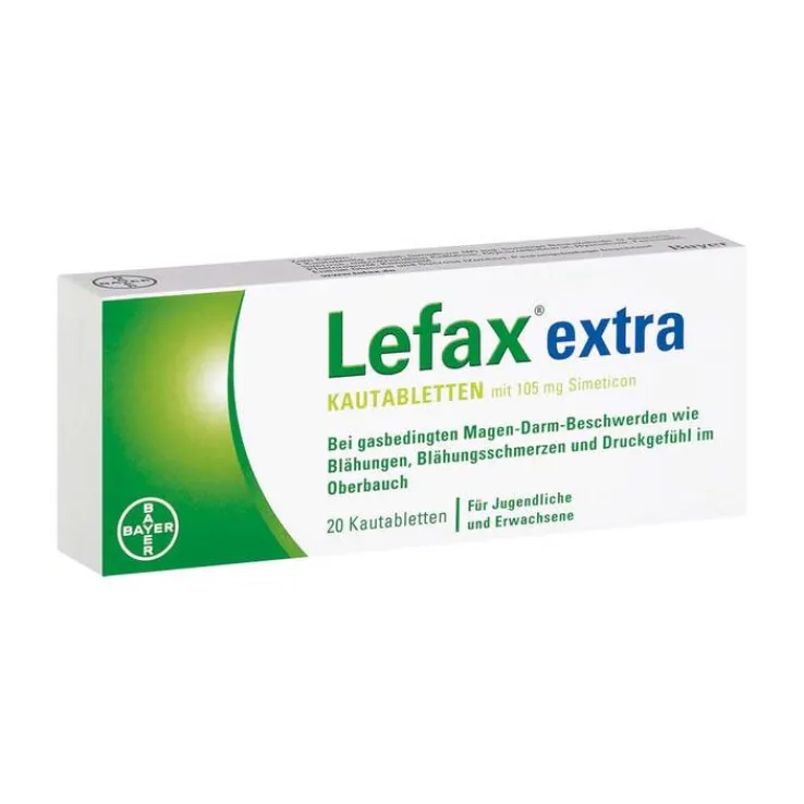 Lefax® extra enthält die gut verträgliche, entschäumend wirkende Substanz Simeticon. Simeticon verändert die Oberflächenspannung der Bläschen im Verdauungstrakt, diese zerfallen und die Luft im Bauch wird an den Stoff gebunden und ausgeschieden. Dabei wirkt der Wirkstoff nur im Darm und wird komplett wieder ausgeschieden.