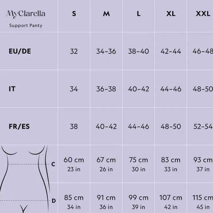 Die MyClarella Support Panty eignet sich ideal für die postpartale Phase*, sowohl nach vaginalen Geburten als auch Kaiserschnitten, da sie sanften Halt nach der Geburt bietet. Zudem bietet sie ein ausreichend breites Gusset, damit die Wochenbetteinlagen sicher an Ort und Stelle bleiben.